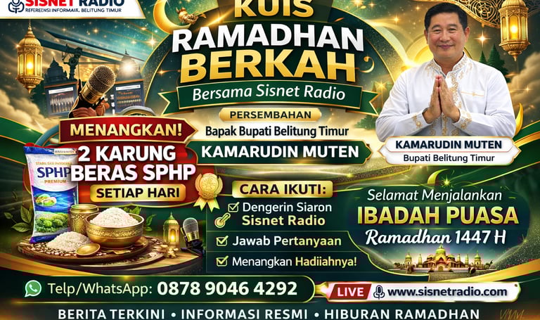 Sisnetradio.com-Manggar. Dalam semangat berbagi dan mempererat kebersamaan di Bulan Suci Ramadhan 1447 H, Sisnet Radio kembali menghadirkan program spesial bertajuk “Kuis Ramadhan Berkah Bersama Sisnet Radio.”